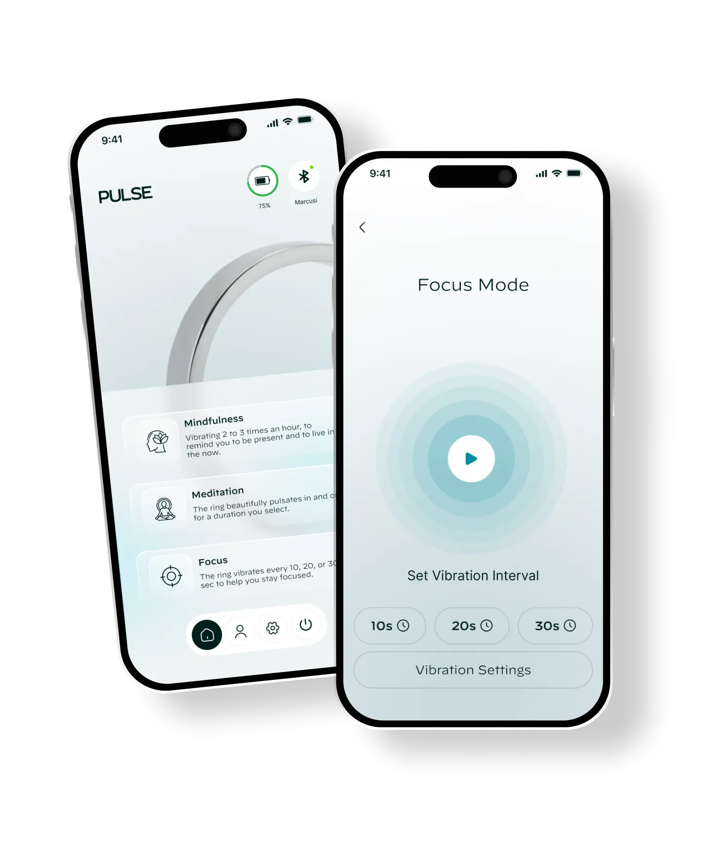 The Pulse App has 3 modes: Mindfulness, Meditation and Focus. Each mode generates specific ring vibrations to help you stay present.